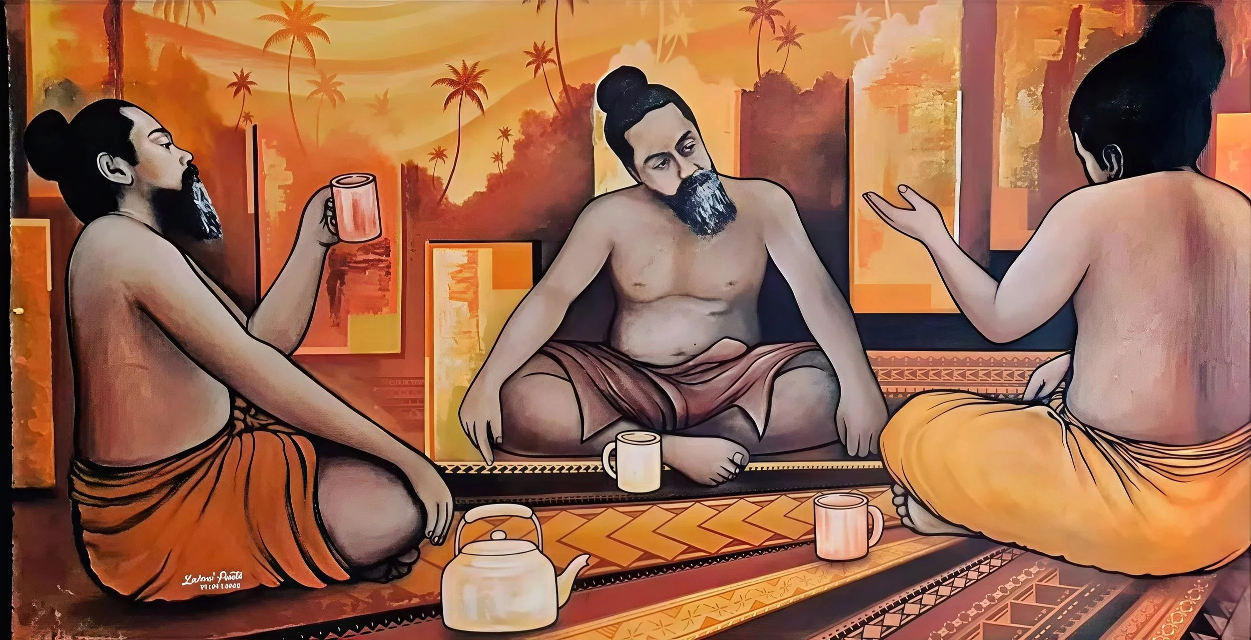 Image credit: ‘Men talk | Fa’asausauga a tamali’i’ (2023) by Lalovai Peseta. Courtesy of Lalovai Peseta, Manamea Art Studio and Talanoa Arts Forum, Sāmoa.